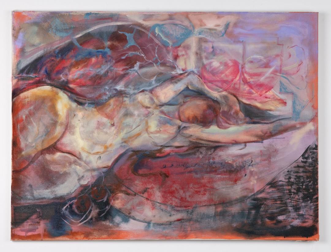 Working across oil, acrylic, and mixed media, Ahern's practice operates at the intersection of intention and material response. Her paintings resist fixed resolution, instead emerging through accumulation, revision, and sustained interaction with surface. Figures appear and dissolve, bodies fragment, and color moves atmospherically-creating works that feel negotiated rather than declared.