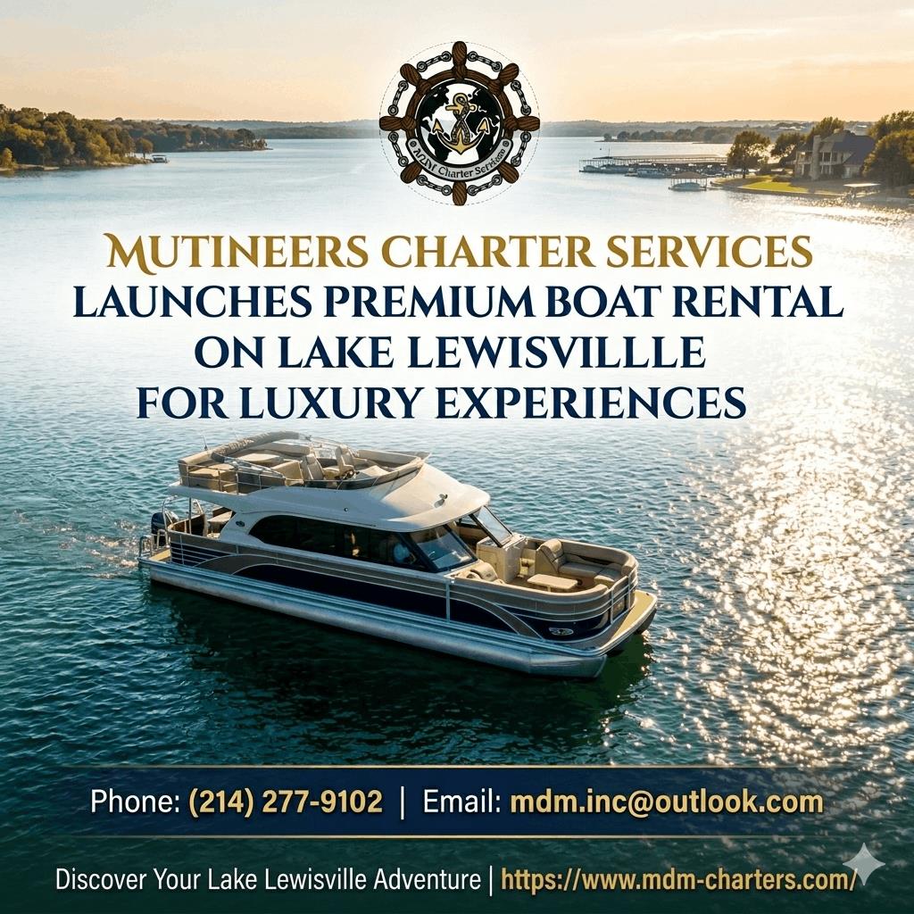 Lake Lewisville, Texas – Mutineers Charter Services is proud to announce the launch of its premium Boat Rental on Lake Lewisville, offering a new way for people in the Dallas-Fort Worth area to enjoy luxury on the water. This new service brings comfort, style, and fun together for families, friends, and corporate groups.