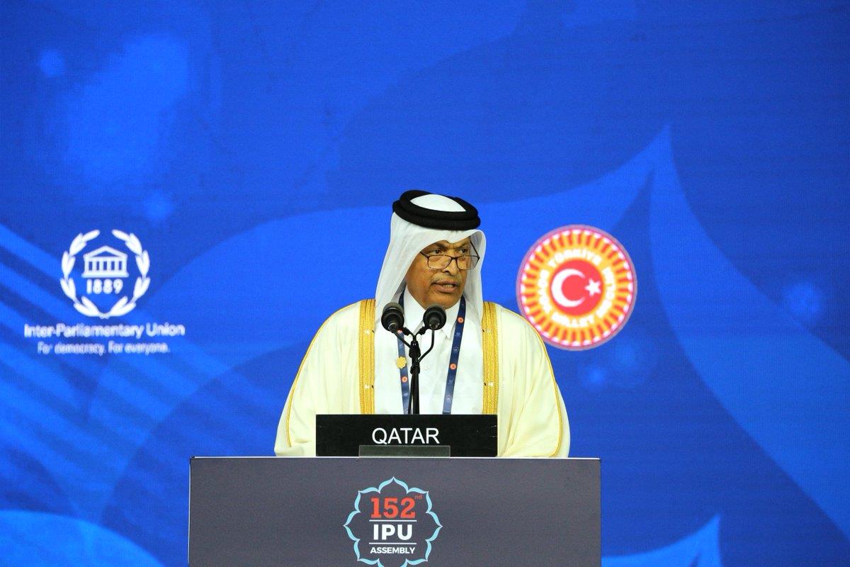 Addressing the 152nd Assembly of the Inter-Parliamentary Union (IPU), underway in Istanbul, Turkiye, His Excellency explained that this approach was met with an Iranian attack targeting civilian facilities within the State of Qatar. This attack damaged infrastructure, endangered civilian lives, and its effects extended to several other Gulf and Arab states, constituting a grave violation of international law and the Charter of the United Nations. He emphasized that the gravity of this attack lies not only in its direct consequences but also in its targeting of purely civilian objects, thereby undermining the foundations of development, threatening the stability of societies, and revealing a gap between political rhetoric and actual practices. This necessitates a clear international stance that ensures accountability and prevents the recurrence of such violations.