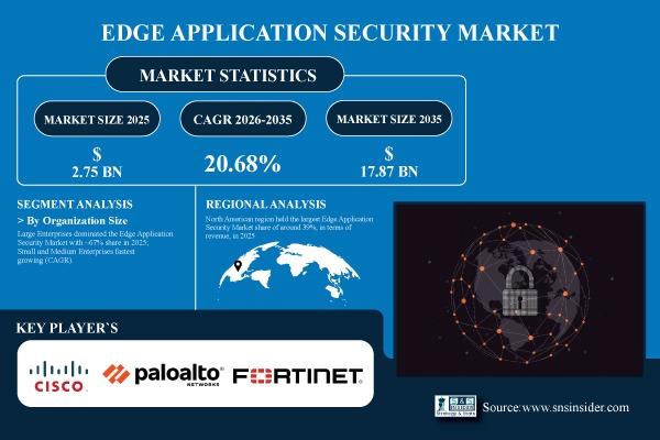 Austin, April 17, 2026 (GLOBE NEWSWIRE) -- The Edge Application Security Market was valued at USD 2.75 billion in 2025 and is expected to reach USD 17.87 billion by 2035, growing at a CAGR of 20.68% over the forecast period.