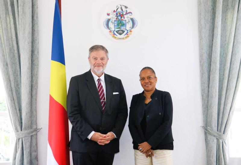 Acting Principal Secretary, Ambassador Beryl Samson, met H.E. Ambassador Wolfgang Hermann Dodd on his official visit to Seychelles, as Special Envoy to Campaign for a Non–Permanent seat on the United Nations Security Council, for the term 2027 – 2028, at Maison Quéau de Quinssy on 15 April 2026. He was accompanied by Germany's Ambassador to Seychelles, H.E. Mr. Sebastien Groth.