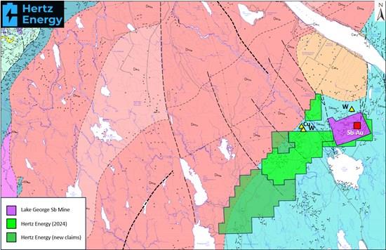 Vancouver, British Columbia--(Newsfile Corp. - April 17, 2026) - Hertz Energy Inc. (CSE: HZ) (OTCQB: HZLIF) (FSE: QE2) (" Hertz Energy " or the " Company ") is pleased to report that Company has significantly expanded its land holdings surrounding the past producing Lake George Antimony Mine located in New Brunswick, Canada, as well as initiating an aggressive exploration program on its claims package. The Company's Lake George Antimony-Tungsten-Gold Project (the "Tungmony Project") comprises a strategic, large-scale land package adjoining and encompassing the historic Lake George Antimony Mine, placing the Company in direct proximity to a proven, past-producing critical minerals deposit within a highly favorable geological setting. Through the consolidation of a large, contiguous land package that now surrounds the former Lake George Antimony Mine on multiple sides and extends along 13 kilometres of prospective strike, Hertz Energy gains exposure to the same structural controls and host rocks that supported North America's largest primary antimony producer until 1996.