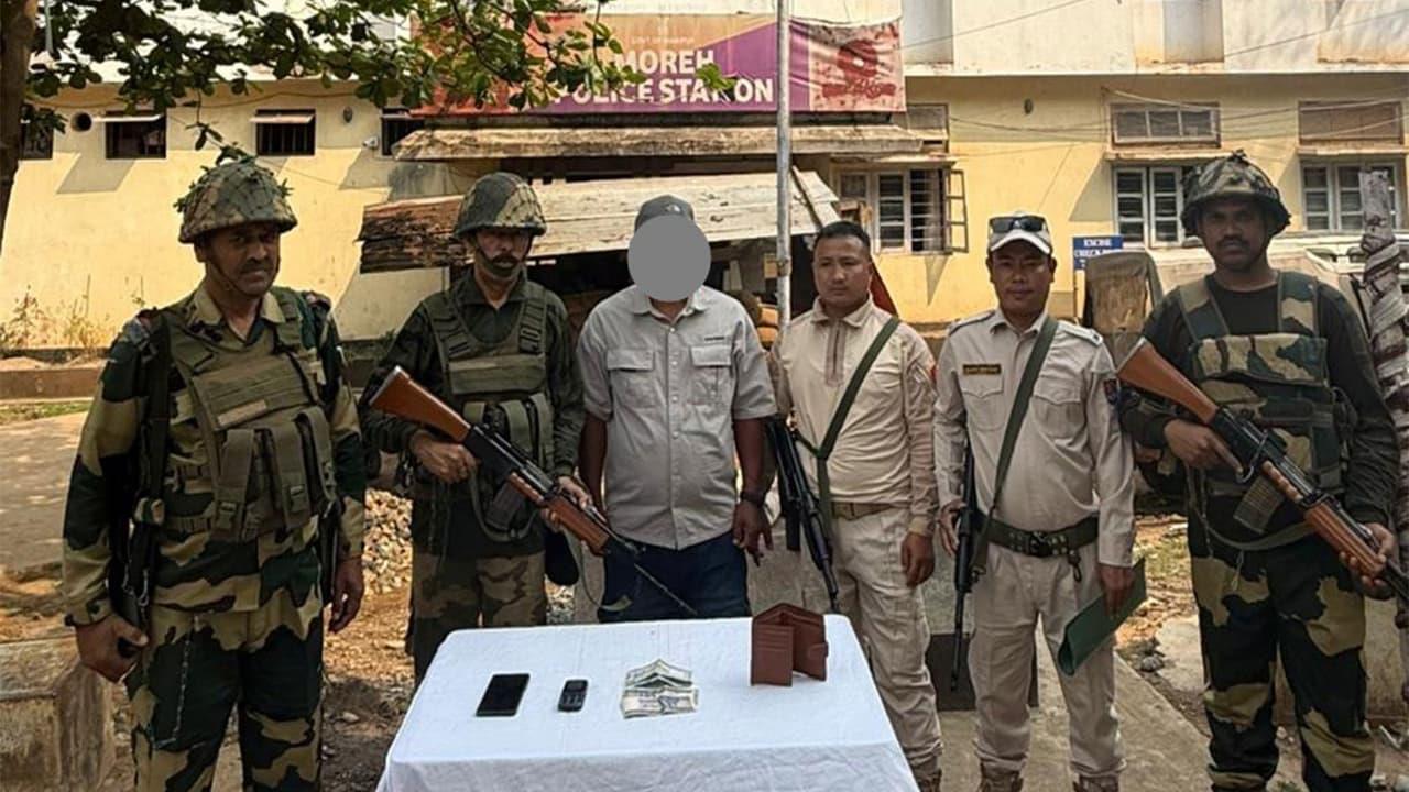 The arrested individual has been identified as Phanjoubam Muhindro of Andro No. 3, Khuman Leikai in Imphal East district. Security forces also recovered two mobile phones and 20,500 Kyats (Myanmar currency) from his possession, the press note stated.