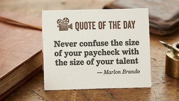 There is also a personal lesson here. Professionals often let salary become a referendum on identity. That is dangerous because compensation can lag behind growth. Brando's quote restores perspective: low pay may mean you are undervalued, early, badly positioned, or in the wrong system - not untalented.