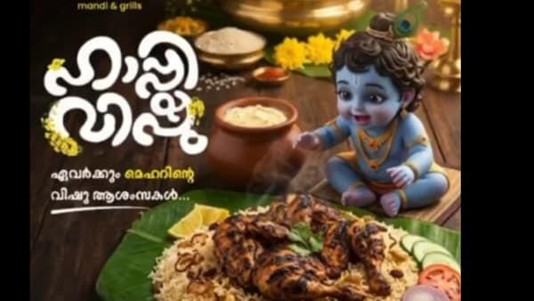 The controversy started when the restaurant published a festive Vishu message on its social media accounts. The post included a visual showing Lord Krishna placed alongside a non-vegetarian chicken dish.