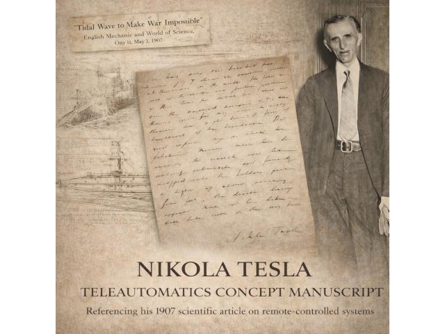 Tesla signed the page in full, "Nikola Tesla," directly below the final sentence, as though formally sealing the argument. The 1907 article was a direct response to the naval arms race then convulsing Europe, published at the moment Britain had just launched HMS Dreadnought and nations were pouring treasure into ever-larger battleships. Tesla's argument was characteristically sweeping: that his telautomaton technology rendered the capital ship obsolete and that remote-controlled tidal wave generators would make war itself impossible.