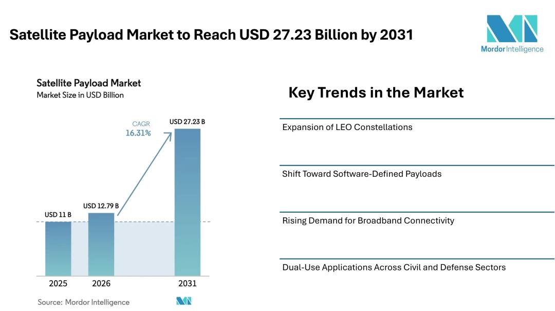 Satellite Payload Market To Reach USD 27.23 Billion By 2031 Driven By LEO Constellations, Software-Defined Payloads Mordor Intelligence