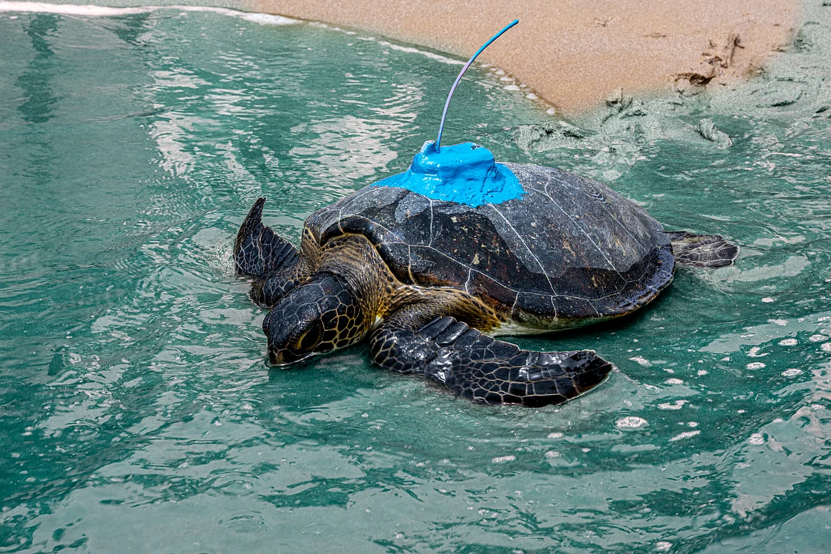 Recommended For YouTracking sensors have been fitted to the released turtles (Chelonia mydas) to monitor their routes and identify preferred nesting grounds. This data will inform conservation strategies and support scientific research into the behaviour of endangered species in the wild.