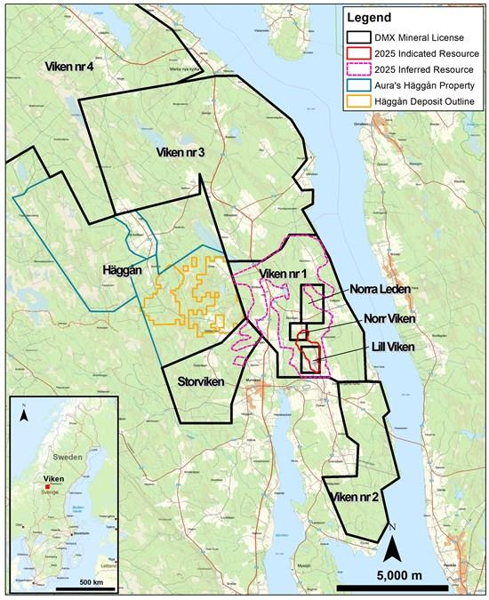 Figure 1: Plan View of Viken Property with Häggån Deposit Adjacent West