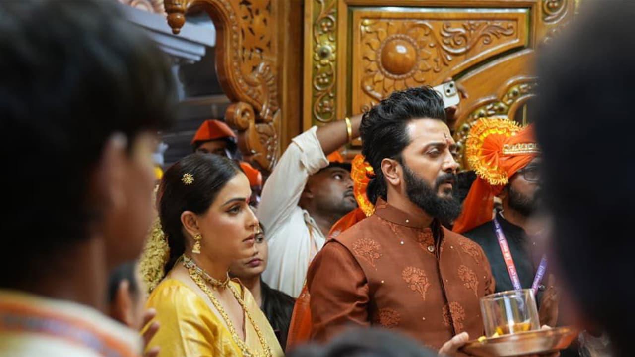 Star couple Riteish Deshmukh and Genelia Deshmukh have been busy promoting their upcoming film 'Raja Shivaji'. Amid the promotional spree, Riteish and Genelia on Sunday visited Chhatrapati Shivaji Maharaj Temple in Bhiwandi and offered their prayers.