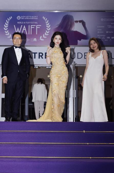 YuCheng Zhang, Founder & President of Stellar Pictures and AI Content Producer, Esther Yu, and Rhea He, Head of Hailuo Brand Marketing, MiniMax, attended the red carpet together. They became high-profile Asian guests at WAIFF, and Esther Yu's red carpet look and international appeal attracted wide media attention. This global premiere further boosts Stellar Pictures' Eastern Fantasy brand globally.