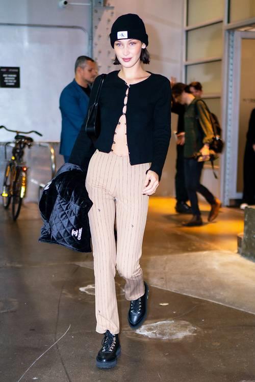 بيلا حديد متيمة بالسترات ذات الأزرار أو البلوزات ذات الأزرار، التى تمنحها الكثير من الأناقة.