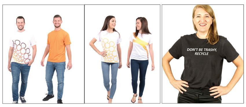 وقال كريس باربر مؤسس الشركة ورئيسها التنفيذي: "جميع المنتجات مصنوعة بنسبة 100% من بلاستيك البولي إيثيلين تيريفثاليت. ويُصنَع كلُّ قميص خاص بمعرض إكسبو 2020 من نحو 8-12 زجاجة بلاستيكية.
