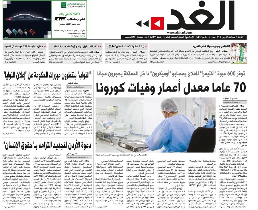 الاردن - عدد“الغد pdf” ليوم الأحد 12/12 (رابط)