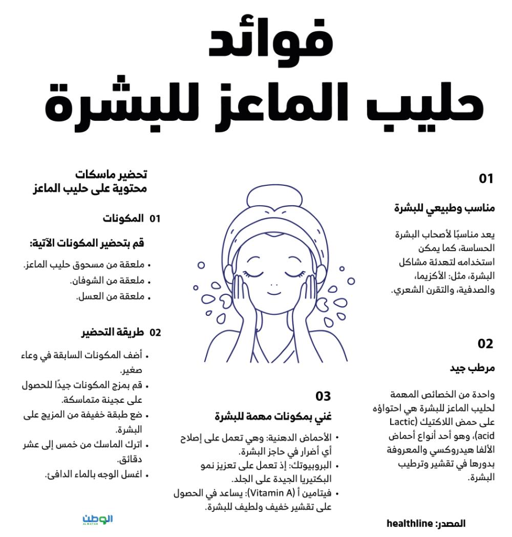 واحدة من الخصائص المهمة لحليب الماعز للبشرة هي احتواؤه على حمض اللاكتيك (Lactic acid)، وهو أحد أنواع أحماض الألفا هيدروكسي والمعروفة بدورها في تقشير وترطيب البشرة.