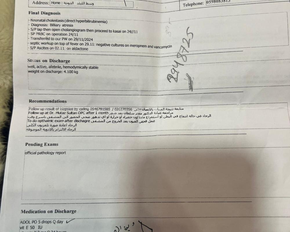 وقالت العائلة في رسالة مناشدتها التي وجهتها للرئيس عباس واللواء ماجد فرج والتي تلقت ال PNN نسخة منها ان الطفلة تيا تعاني من تليف كبدي وصل إلى مرحلة حرجة، مما أدى إلى ظهور مضاعفات خطيرة تهدد حياتها بشكل مباشر.