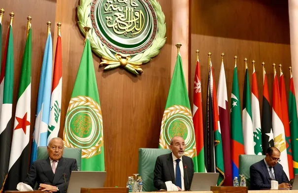 يرفرف علم سوريا الجديدة اليوم عاليًا في جامعتنا العربية، حاملًا وعد إعادة بناء الوطن السوري الآمن المستقر بعد سنوات طويلة من القهر والقتل والمعاناة. نرحب بك معالي الأخ أسعد الشيباني في حضورك الأول للدورة العادية لمجلسنا الوزاري، ونؤكّد وقوفنا معكم في جهود إعادة بناء سوريا على الأسس التي تضمن وحدتها وأمنها وتماسكها وسيادتها، وتخلصها من الإرهاب، وتهيّء ظروف العودة الطوعية للاجئين، وتحقق طموحات الشعب السوري الشقيق، وتحفظ حقوق كل مكوناته.