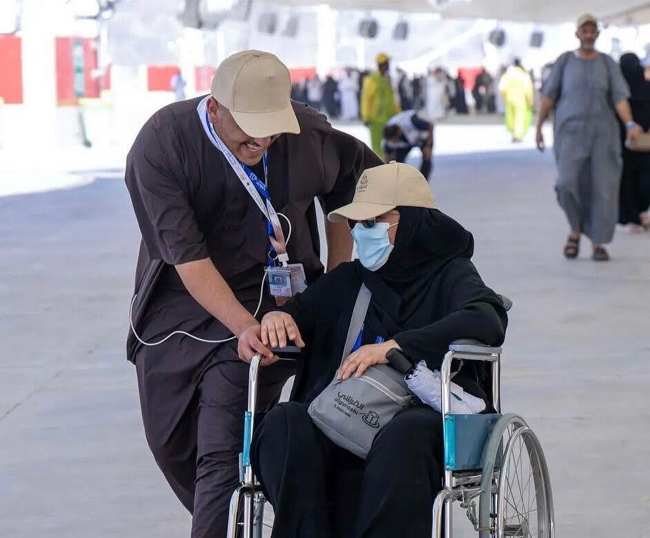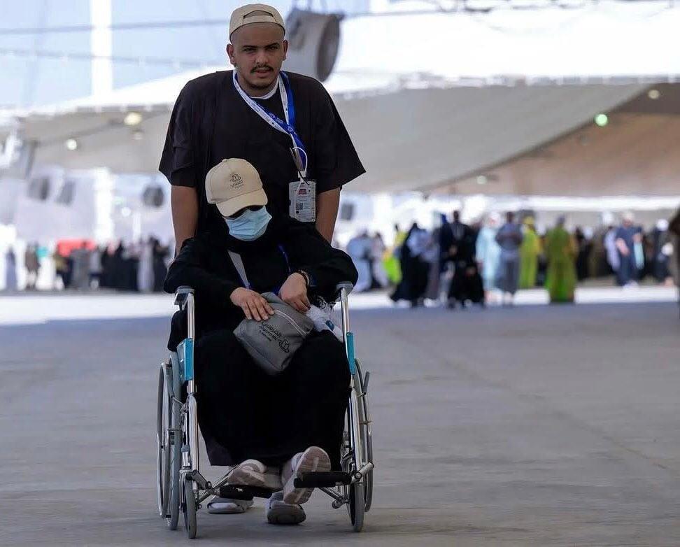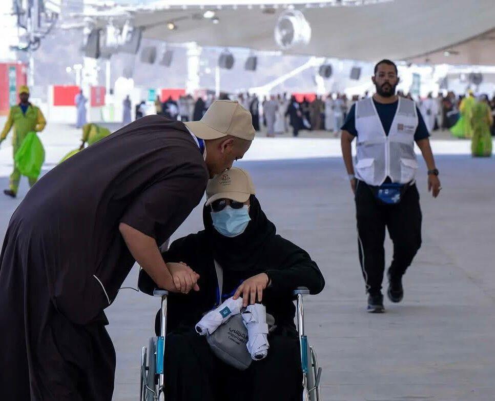 تتجول بين الحجيج فتراهم يسيرون جنبًا إلى جنب، ويدًا بيد، في مشاهد لا تخلو من العاطفة الخالصة، أبناؤهم يدفعونهم على الكراسي المتحركة في صبر ورضا، والابتسامة لا تفارق وجوههم. يحرصون على تقبيل رؤوسهم في كل محطة، ويعمدون إلى مساعدتهم في ارتداء الأحذية وتنظيم ملابسهم، بينما ينحنون لتقديم العصائر والمياه الباردة مع ارتفاع حرارة الجو.
