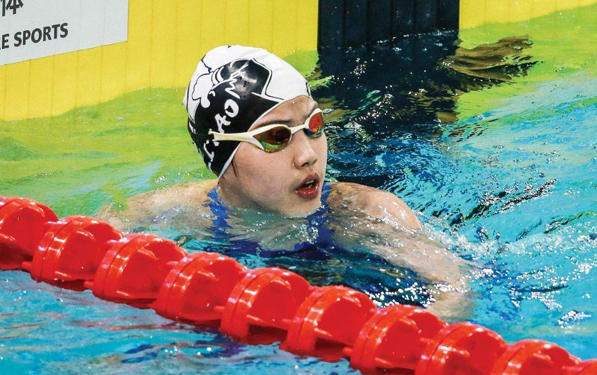أدهشت هذه التلميذة الملقبة بـ«الطفلة الحديدية» والتي ترتدي قبعة سباحة مزينة برسمة كلب من عالم الكرتون، عالم السباحة في مايو الماضي بتحقيقها أزمنة مذهلة خلال بطولة الصين الوطنية.