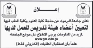 (MENAFN- Al Wakeel News) الوكيل الإخباري-أعلنت جامعة اليرموك اليوم الاربعاء عن حاجتها لتعيين أعضاء هيئة تدريس.