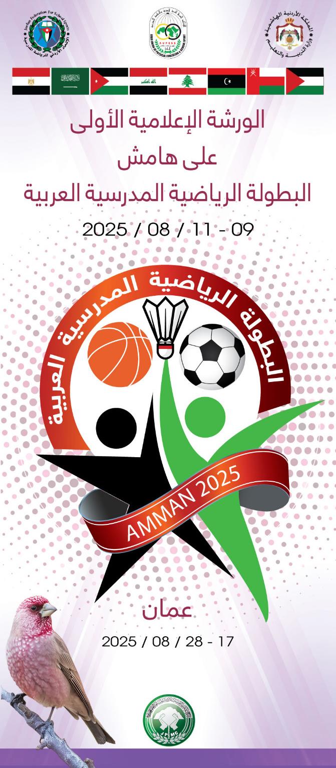 عمان 9 آب (بترا)- انطلقت، اليوم السبت، فعاليات ورشة الإعلام الرياضي المدرسي، التي تنظمها وزارة التربية والتعليم بالتعاون مع الاتحاد الرياضي المدرسي، على هامش استضافة الأردن للبطولة العربية المدرسية التي ستقام خلال الفترة من 17 إلى 28 من الشهر الحالي.