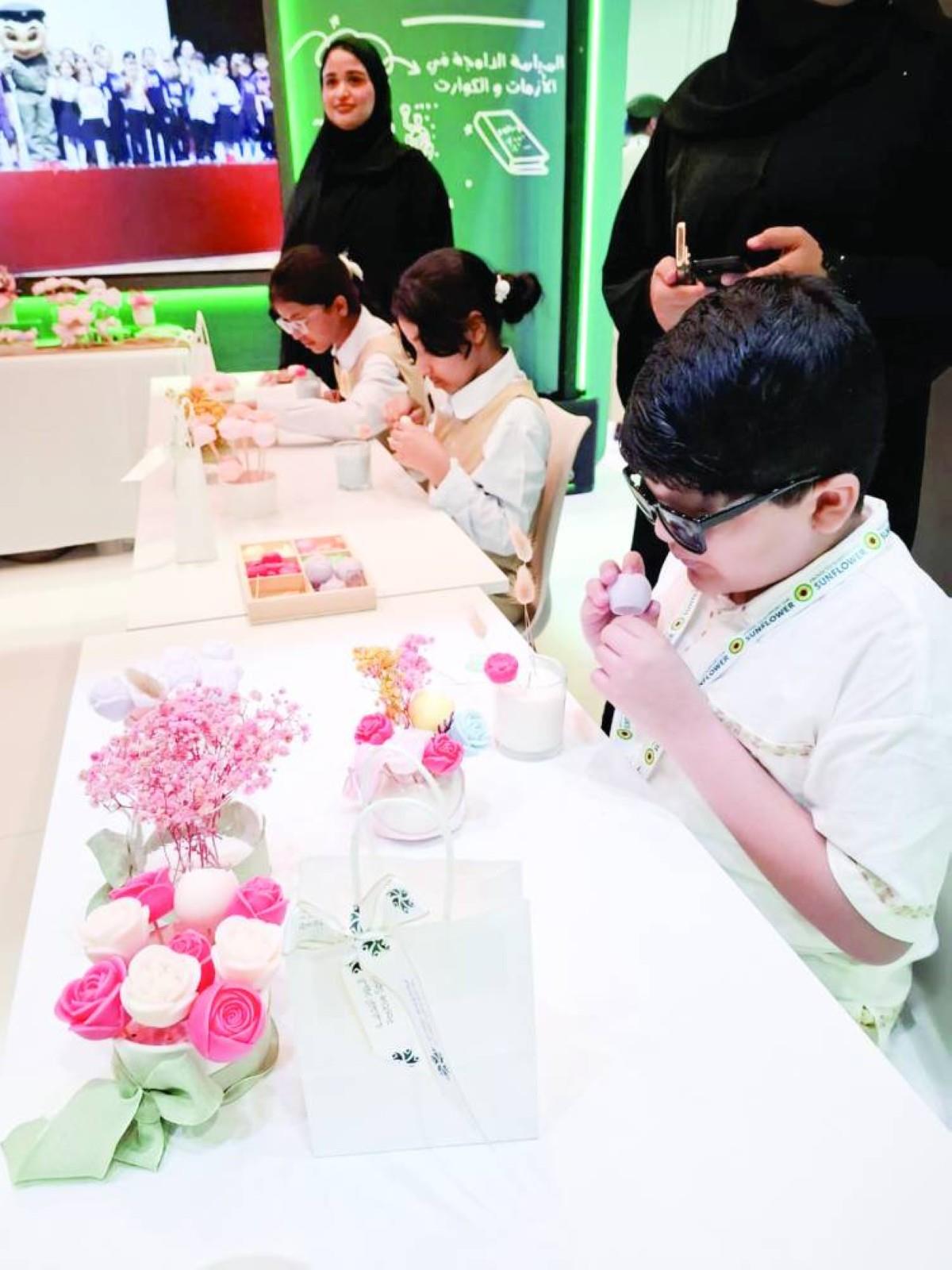 وهدفت الورشة التي تم تنظيمها خلال فعاليات معرض إكسبو أصحاب الهمم الذي انطلقت فعالياته صباح أمس في المركز التجاري العالمي بمشاركة واسعة من مختلف الجهات الحكومية والخاصة، إلى تطوير المهارات الحسية والفنية للأطفال من خلال تجربة تفاعلية ممتعة تجمع بين الإبداع والعمل اليدوي، بما يسهم في تنمية قدراتهم على التركيز والتعبير الفني، وتعزيز ثقتهم بأنفسهم عبر إنجاز منتج ملموس من صنع أيديهم.