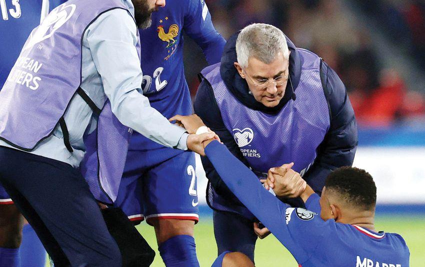 باريس - (أ ف ب): تعرّض قائد منتخب فرنسا لكرة القدم كيليان مبابي لإصابة جديدة بكاحله الأيمن، خلال مواجهة أذربيجان الجمعة في تصفيات مونديال 2026، وسيغيب عن رحلة الـ«زرق» إلى أيسلندا، بحسب ما أعلن الجهاز الفني للمنتخب.