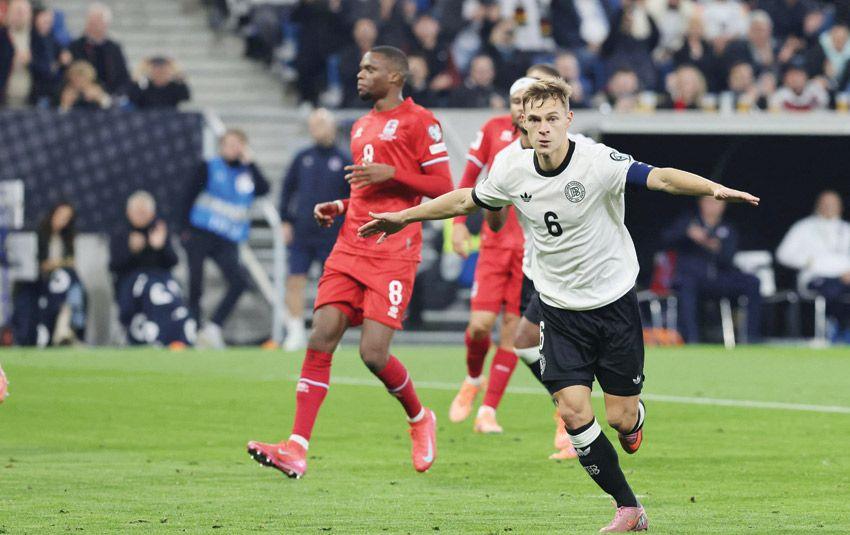 سينسيهايم – (د ب أ): كان جوشوا كيميش، قائد المنتخب الألماني لكرة القدم، في حالة معنوية عالية بعد تسجيله أول ثنائية له مع المنتخب، في المباراة التي فاز فيها برباعية نظيفة على لوكسمبورج ضمن التصفيات الأوروبية المؤهلة لكأس العالم 2026 - رغم عودته للعب في مركز الظهير الأيمن، الذي لا يفضله كثيرا.