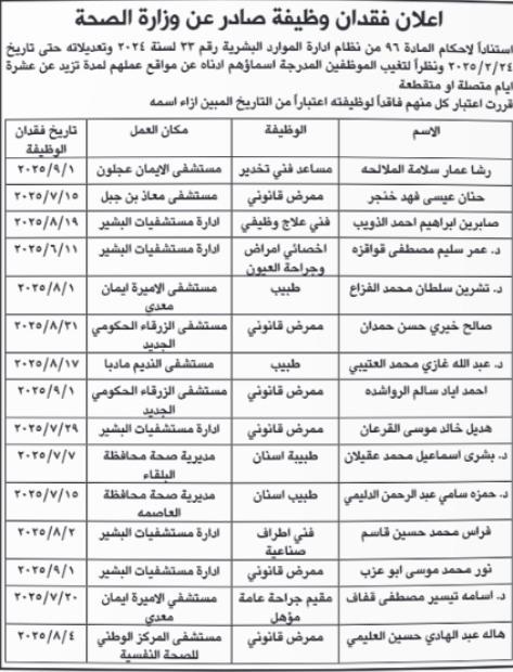 فاقدون لوظائفهم في وزارة الصـحة - أسماء
