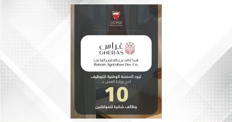 في إطار تنفيذ توجيهات سمو ولي العهد رئيس مجلس الوزراء بعرض 3 فرص وظيفية لكل باحث عن عمل .. شركة البحرين للتطوير الزراعي (غراس) تزود المنصة الوطنية للتوظيف بـ 10 وظائف شاغرة للمواطنين