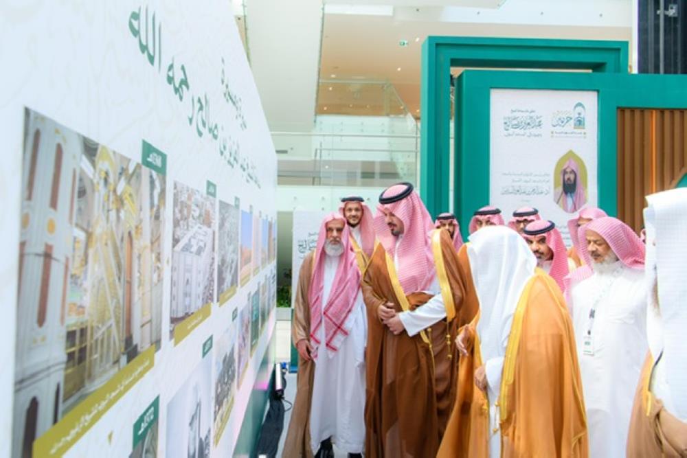 واطّلع الأمير سلمان بن سلطان خلال زيارته للمعرض المصاحب للملتقى على الأجنحة المشاركة، التي تضمّنت صورًا تاريخية توثّق سيرة ومسيرة سماحة الشيخ عبدالعزيز بن صالح -رحمه الله-، إلى جانب شاشة عرض خُصصت للأفلام والمواد المرئية التي تتناول سيرته العطرة، ومقاطع من خطبه وتلاواته، بالإضافة إلى ركنٍ لمدرسة الشيخ ابن صالح الابتدائية.