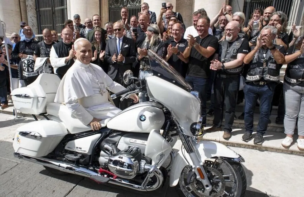 وجاء على الموقع الإلكتروني أن ليون الرابع عشر تلقى الدراجة هدية في 3 سبتمبر من هذا العام، بعد أن نقلها أعضاء "يسوس بايكرز" من ألمانيا على مدار ثلاثة أيام. ووقّع البابا على خزان وقود الدراجة.