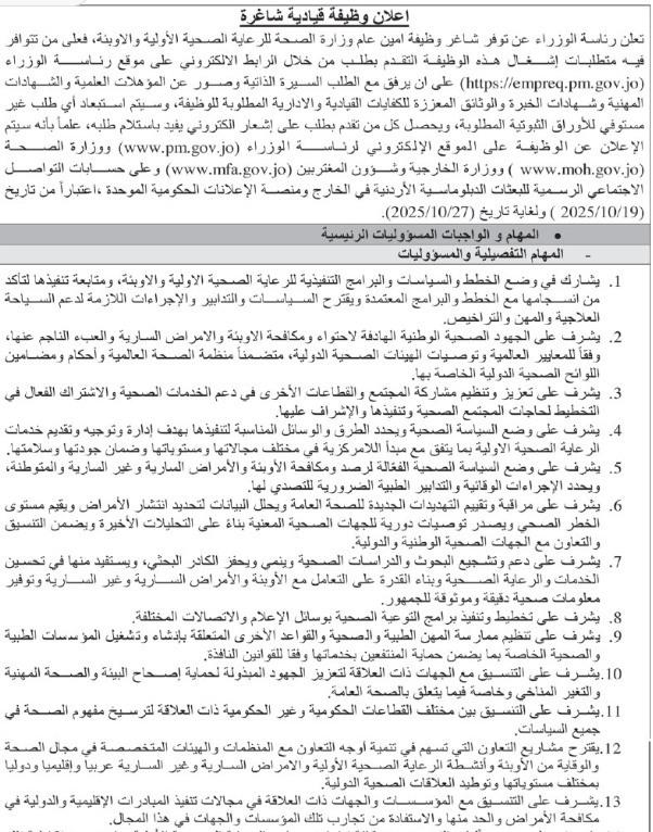 الحكومة تعلن عن وظيفة قيادية شاغرة