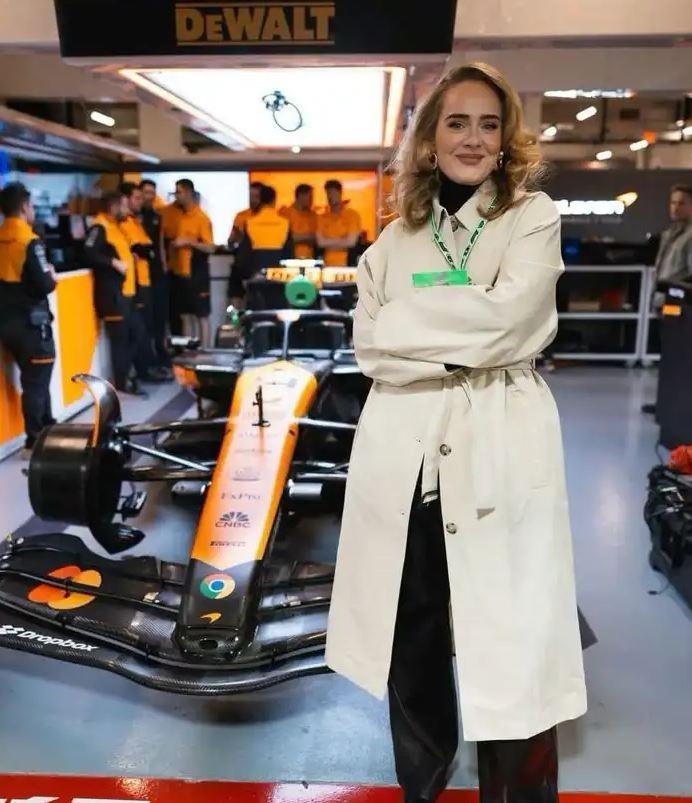 أديل تعود للأضواء بعد غياب 6 أشهر بظهور مفاجئ في سباق فورمولا 1 - صور