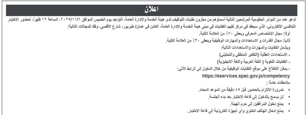 تدعو عدد من الدوائر الحكومية، اليوم الثلاثاء، التالية أسماؤهم لحضور الاختبار التنافسي.