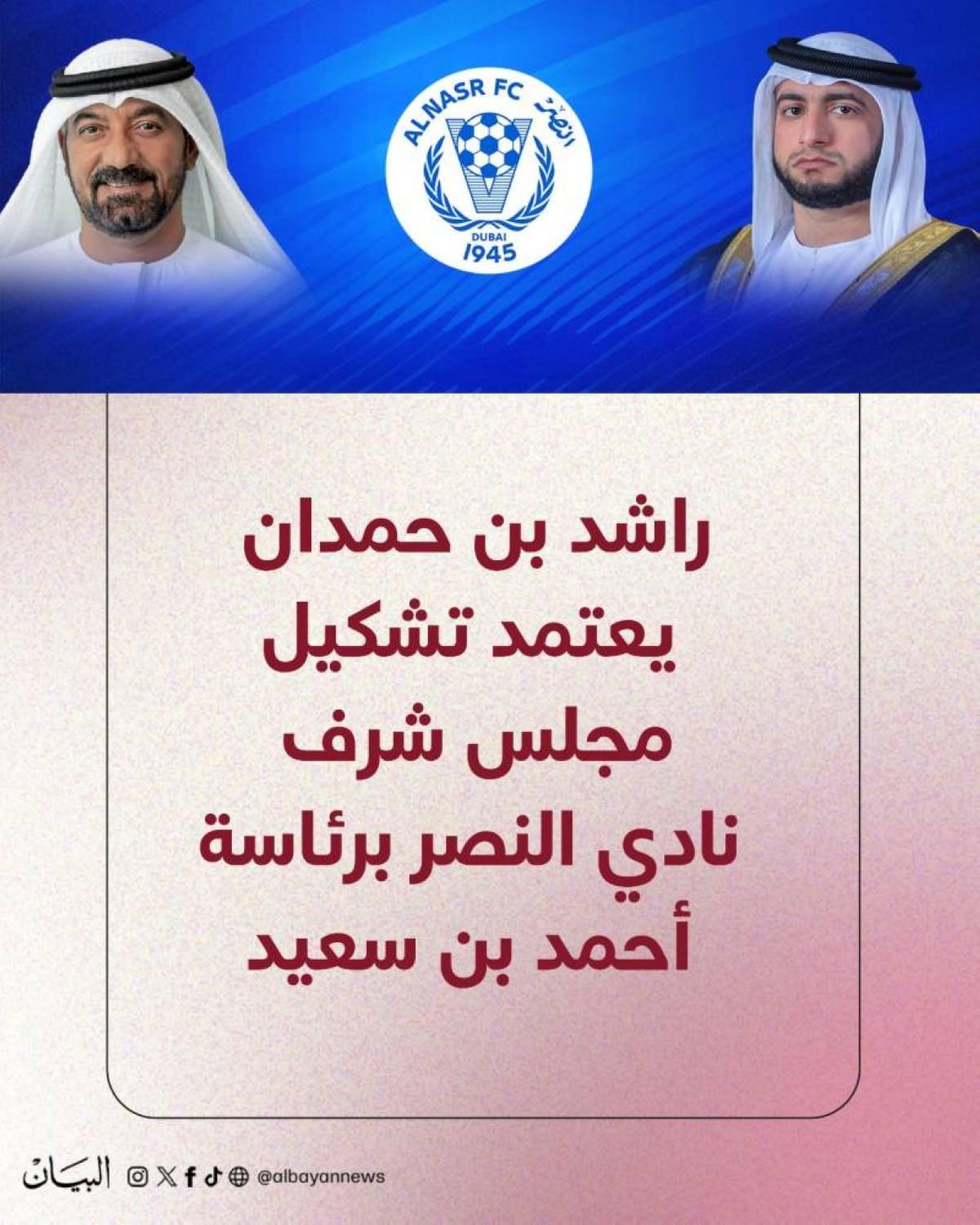 راشد بن حمدان يعتمد تشكيل مجلس شرف نادي النصر برئاسة أحمد بن سعيد