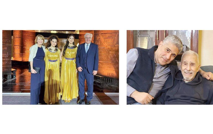 في ختام الاحتفال بافتتاح المتحف المصري الكبير، طلب الرئيس الألماني فرانك فالتر شتاينماير، مصافحة عازفتي الكمان اللتين تألقتا على المسرح، بعزفهما المتقن، وبالفعل التقى بهما وطلب التقاط صورة تذكارية هو وزوجته مع العازفتين.