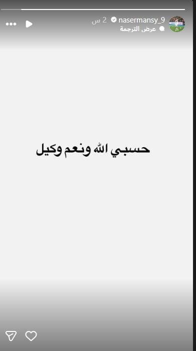 أثار اللاعب ناصر منس مهاجم نادى الزمالك الجدل على السوشيال ميديال بعدما نشر ريلز على حسابه فى "انستجرام"، ونشر لاعب ناصر منسى على حسابه تغريدة كتب فيها " حسبى الله ونعم الوكيل".