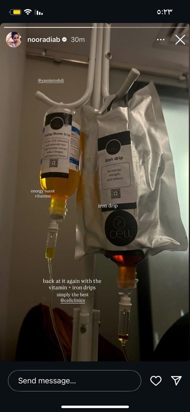 ونشرت نور صورة لها من داخل المستشفى عبر حسابها على إنستغرام، وعلقت عليها قائلة: "العودة مرة أخرى مع قطرات الفيتامين والحديد.. الأفضل على الإطلاق".
