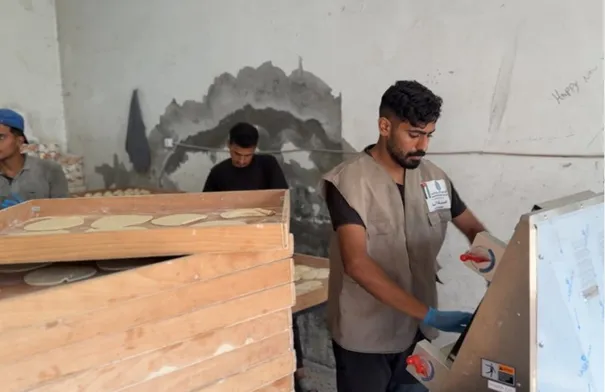 وزّعت الحملة الأردنية للإغاثة، بالتعاون مع الهيئة الخيرية الأردنية الهاشمية، ربطات الخبز الطازجة على الأهالي العائدين إلى منطقة شمالي قطاع غزة، وتحديدًا مخيّم جباليا.
