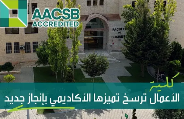 في إنجاز أكاديمي نوعي يعكس مكانتها الريادية، حصلت كلية الأعمال في جامعة العلوم التطبيقية الخاصة على الاعتماد الأمريكي المرموق (AACSB)، لتكون بذلك الثالثة على مستوى الأردن التي تنال هذا الاعتماد الدولي المتميز بعد جامعة الأميرة سمية والجامعة الأردنية، وضمن الـ 6% من الجامعات النخبوية على مستوى العالم التي تنال هذا الاعتماد.