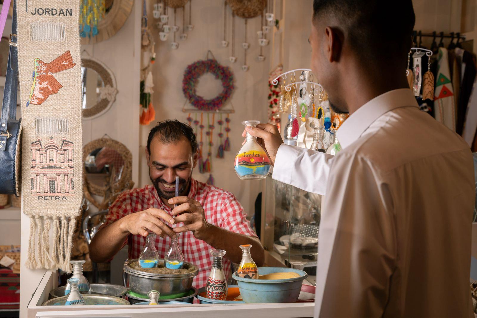 وقال يزن عيد، الذي يقدم فن الرمل الملون، إن المعرض يشكل منصة مهمة لعرض هذا الفن الذي يعكس طبيعة الأردن وتنوع بيئته، لافتًا إلى أن الرسم بالرمل داخل القوارير يمثل أحد أبرز الفنون التي تجذب الزوار وتعرفهم على الجغرافيا الأردنية بروح فنية مبتكرة.