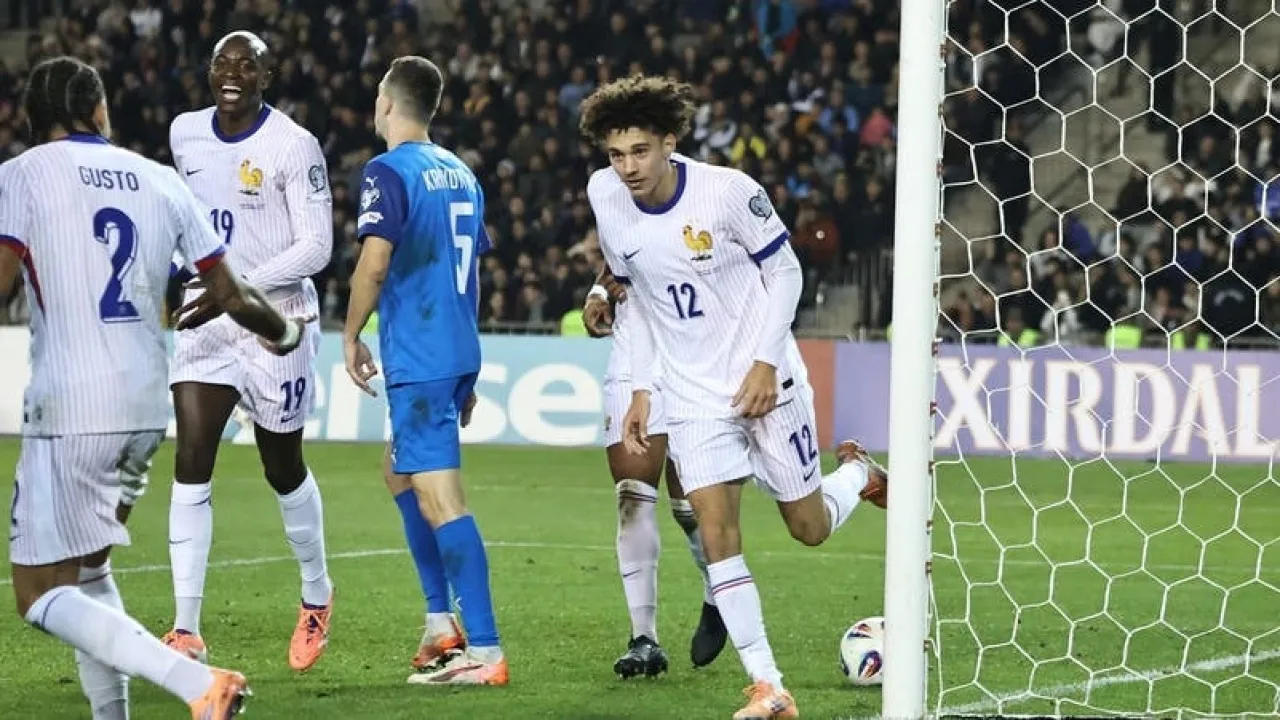 خبرني - حقق المنتخب الفرنسي، الضامن تأهله سلفاً إلى كأس العالم لكرة القدم 2026، فوزه الخامس في التصفيات الأوروبية بتغلبه بالاحتياطيين على مضيفه الأذربيجاني 3-1 الأحد في الجولة السادسة الأخيرة من منافسات المجموعة الرابعة.