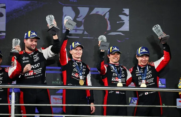 اختتم فريق تويوتا جازو للسباقات موسم بطولة العالم للتحمّل التي ينظمها الاتحاد الدولي للسيارات لعام 2025 بفوزٍ كبير مع حصوله على المركزين الأول والثاني في سباق البحرين 8 ساعات. قدّم مايك كونواي، وكاموي كوباياشي، ونيك دي فريس أداءً استثنائيًا على متن سيارة تويوتا جي آر 010 عالية الأداء التي تحمل الرقم 7، ونجحوا في تحويل مركز الانطلاق الأول إلى انتصار، ليضمنوا الفوز التاسع على التوالي للفريق في البحرين، بينما أكمل زملاؤهم سيباستيان بويمي، وبريندون هارتلي، وريو هيراكاوا على متن سيارة تويوتا جي آر 010 عالية الأداء التي تحمل الرقم 8 هذه النتيجة المثالية بفوزهم بالمركز الثاني بفارق 19.378 ثانية فقط خلف طاقم السيارة رقم 7.