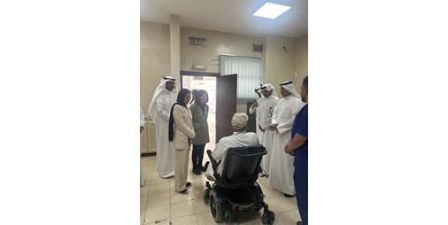 هذا وتفقّدت الوزيرة برفقة مدير عام الهيئة د.دلال العثمان ونائب المدير العام لقطاع الخدمات الطبية والإيوائية د.خليفة الهيلع. مخزن الكراسي في مجمع دور هذا وتفقدت الوزيرة برفقة مدير عام الهيئة د.دلال العثمان ونائب المدير العام لقطاع الخدمات الطبية والإيوائية د. خليفة الهيلع. مخزن الكراسي في مجمع دور الرعاية الصليبخات الى جانب حضورهم في عمليات القياس والتجربة للكراسي لعدد من الاشخاص ذوي الاعاقة من مختلف الفئات العمرية.