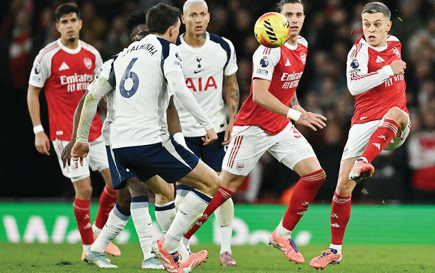 لندن‭ - (‬أ‭ ‬ف‭ ‬ب‭): ‬تجاوز‭ ‬أرسنال‭ ‬عقبة‭ ‬جاره‭ ‬اللدود‭ ‬توتنهام‭ ‬بفوزه‭ ‬الكبير‭ ‬عليه‭ ‬4‭-‬1‭ ‬بفضل‭ ‬ثلاثية‭ ‬لإيبيريتشي‭ ‬إيزي‭ ‬أمس‭ ‬الأحد‭ ‬على‭ ‬‮«‬ستاد‭ ‬الإمارات‮»‬‭ ‬في‭ ‬المرحلة‭ ‬الثانية‭ ‬عشرة‭ ‬من‭ ‬الدوري‭ ‬الإنجليزي‭ ‬لكرة‭ ‬القدم،‭ ‬مبتعدا‭ ‬في‭ ‬الصدارة‭ ‬بفارق‭ ‬6‭ ‬نقاط‭ ‬عن‭ ‬وصيفه‭ ‬الجديد‭ ‬جاره‭ ‬الآخر‭ ‬تشلسي‭.‬