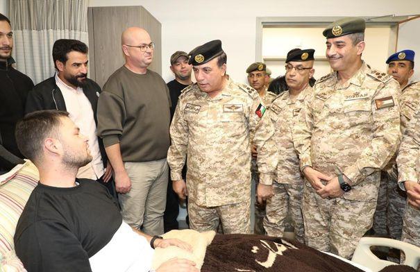 واطمأن المساعد للعمليات والتدريب بحضور مدير عام الخدمات الطبية الملكية على الحالة الصحية للمصابين، ونقل لهم تمنيات القيادة العامة للقوات المسلحة بالشفاء العاجل، مؤكداً حرصها على تقديم الرعاية الصحية والعلاجية اللازمة لهم.