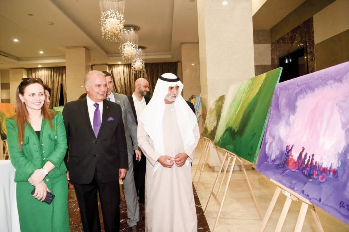 وقام معالي الشيخ نهيان بجولة شاملة في أروقة المعرض، اطلع خلالها على الأعمال الفنية التي يقدمها السفير إيلي الترك، والتي تجاوز عددها 65 لوحة تجمع بين مدارس تشكيلية متعددة، وتمتاز بتوليفات لونية نابضة بالحياة تعكس خبرته الدبلوماسية الطويلة ورؤيته الإنسانية المرتكزة على الجمال والانسجام والفرح.