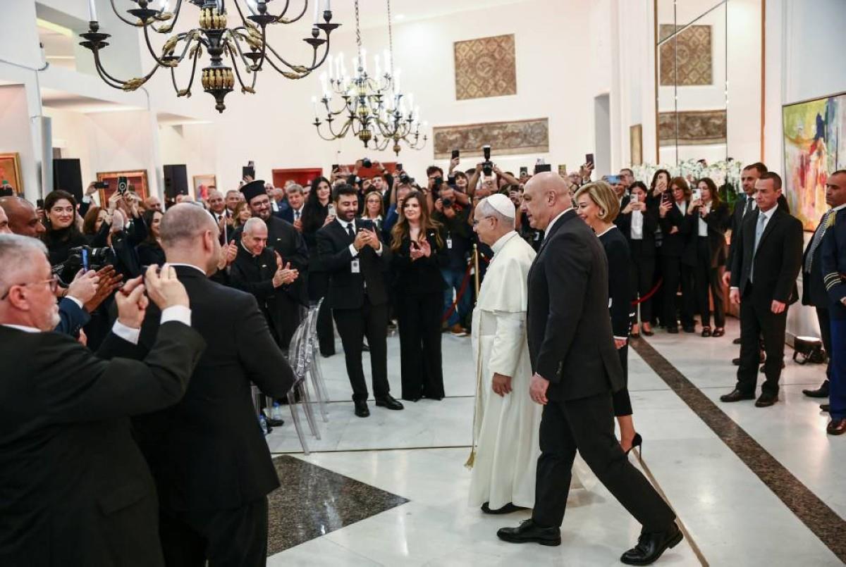 وفي خطاب ألقاه في القصر الرئاسي، بحضور المسؤولين اللبنانيين ودبلوماسيين وممثلين عن المجتمع المدني، شدد الحبر الأعظم على أهمية "السلام" الداخلي بين اللبنانيين، وهي كلمة كررها 27 مرة في خطابه، من دون التطرق الى الأوضاع الاقليمية والدولية أو الحرب الأخيرة بين حزب االله واسرائيل، التي تواصل شن ضربات دامية على لبنان.
