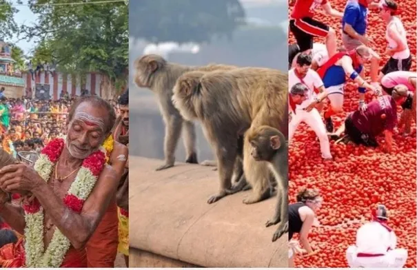 - مهرجان الطماطم – إسبانيا: يقيم سكان بلدة بونيول مهرجان "لا توماتينا" آخر أربعاء من أغسطس، حيث يقذف المشاركون الطماطم على بعضهم في معركة غذائية ضخمة، بدأ تقليدها عام 1945 بعد حادثة عفوية.